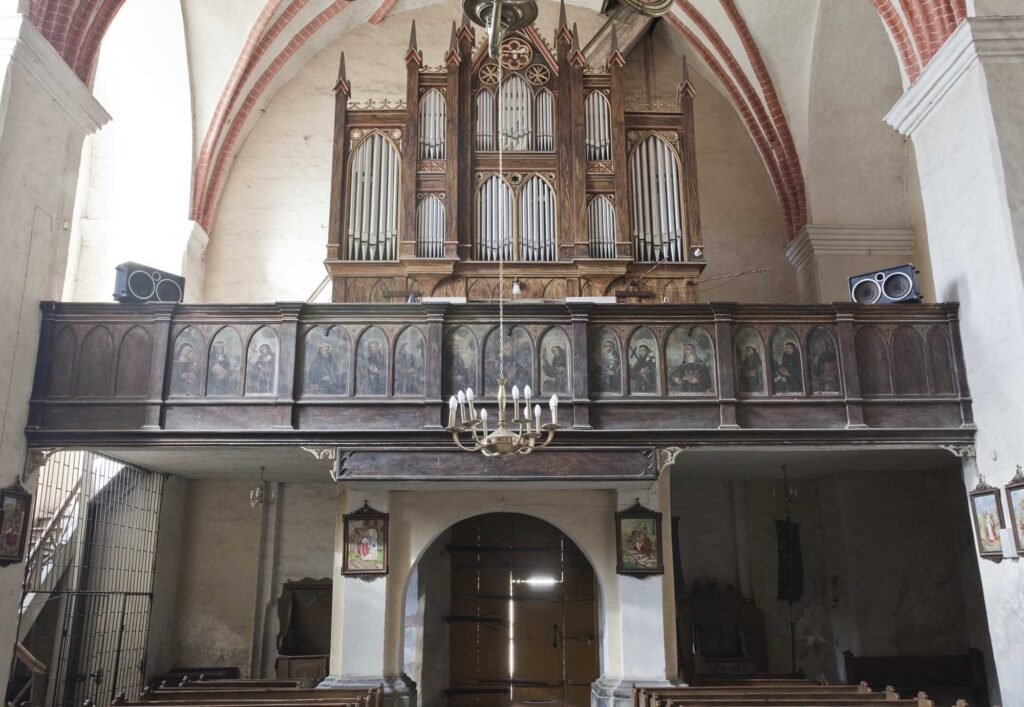 Rozbudowa instrumentu muzycznego spowodowała zapewne potrzebę powiększenia chóru, dlatego też w latach 70-tych XVII stulecia przy zachodniej ścianie świątyni wybudowano okazałą empora, zapewne z wykorzystaniem elementów i obrazów z poprzedniej rozebranej bariery na północnej ścianie. Jej wysokość spowodowała jednak, że oryginalne, niezwykle cenne, drzwi do kościoła z 1604 r. dostoswane do półkolistego portalu musiały zostać docięte.
