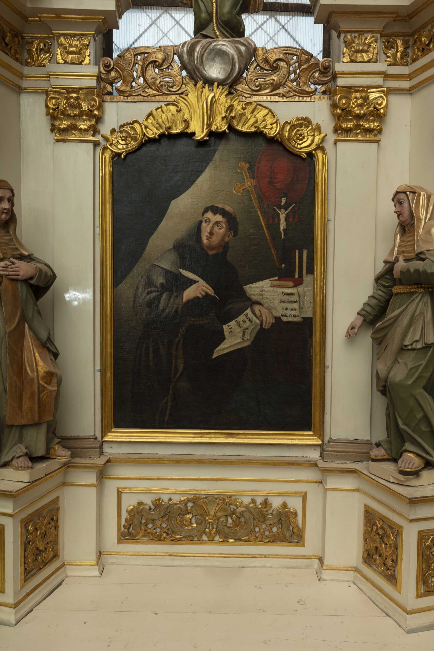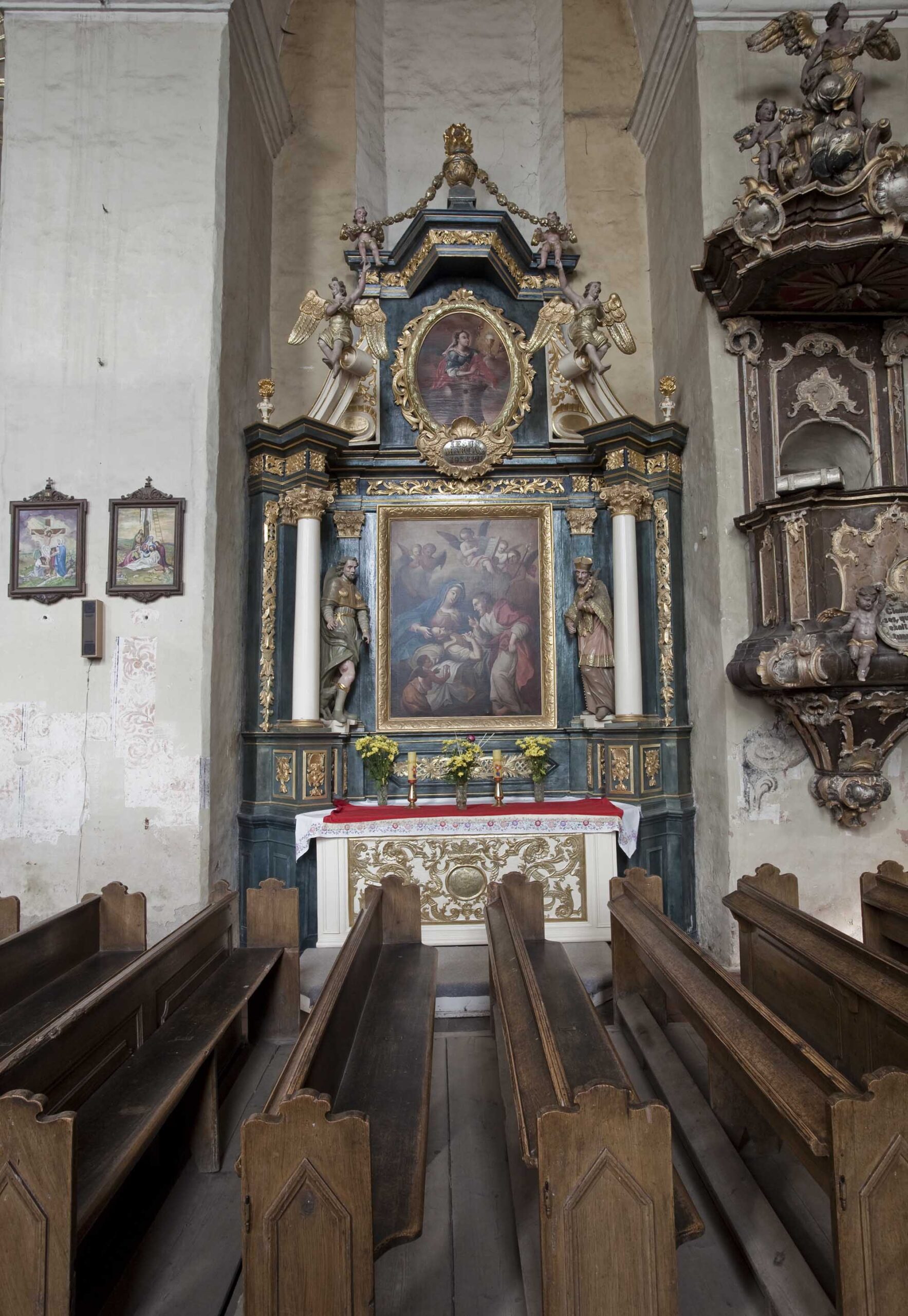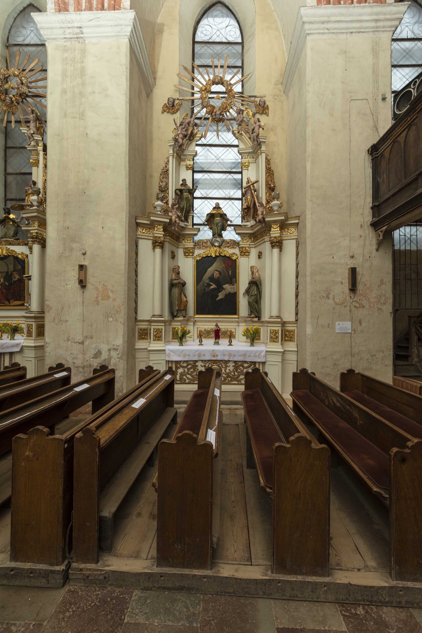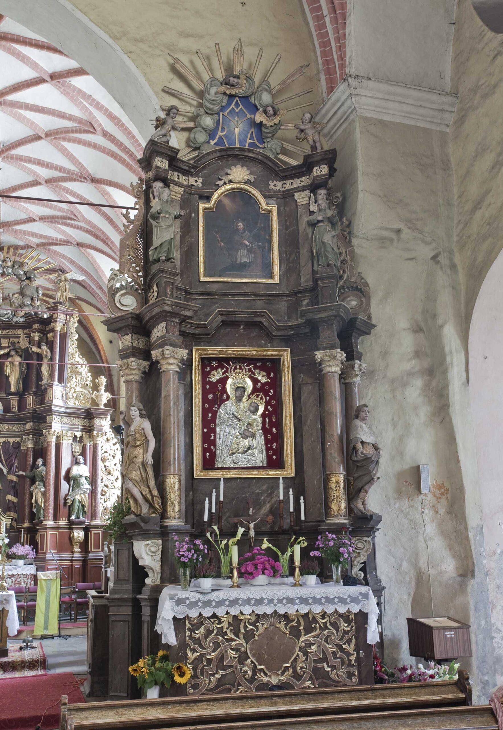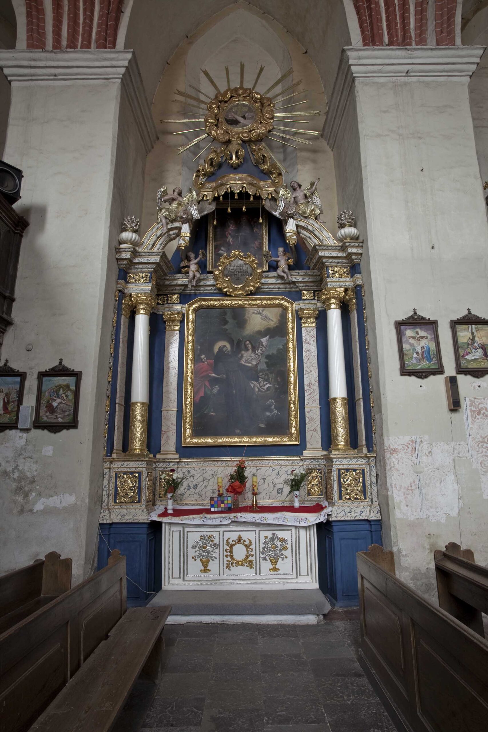 Warto zwrócić uwagę na regencyjną nastawę pw. św. Franciszka, w której umieszczony został obraz przedstawiający stygmatyzację świętego, opatrzony datą 1654. Z pewnością obraz pochodził z wcześniejszego retabulum, którego malarska oprawa zachowała się na ścianie północnej. W dolnych rogach płótna umieszczono dwa herby: Rogala, opatrzony literami MD/DD oraz herb Murdelio I.M:K. Drugi z herbów należał do Jacka (Hiacynta) Murdelio Karwata, co najmniej od 1653 burgrabiego zamku biskupiego w Barczewie, który był wówczas jedyną osobą w Prusach pieczętującą się tym herbem. Być może pojawił się on na Warmii w 1633 roku wraz z biskupem Mikołajem Szyszkowskim.