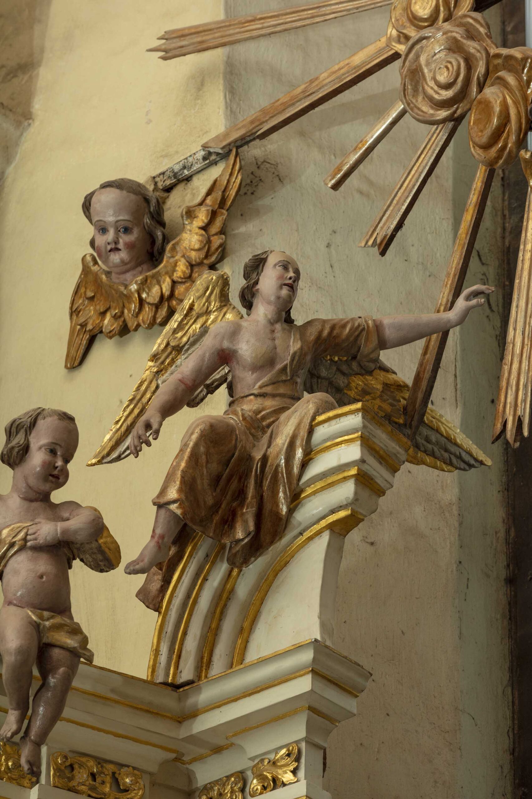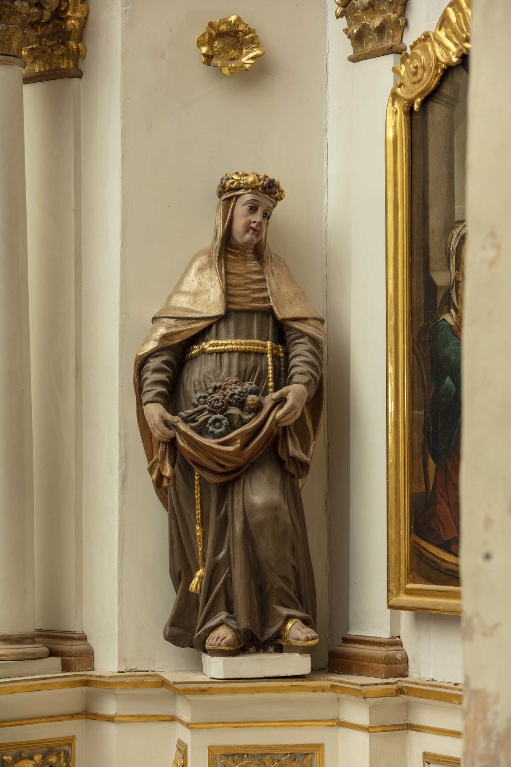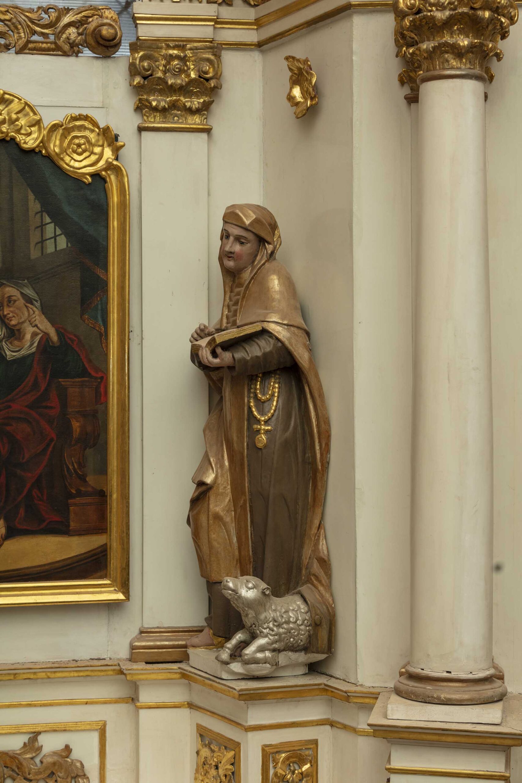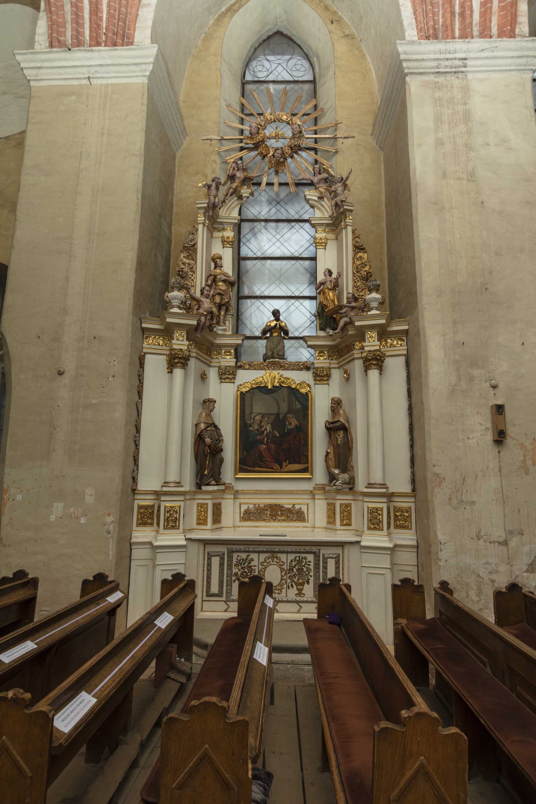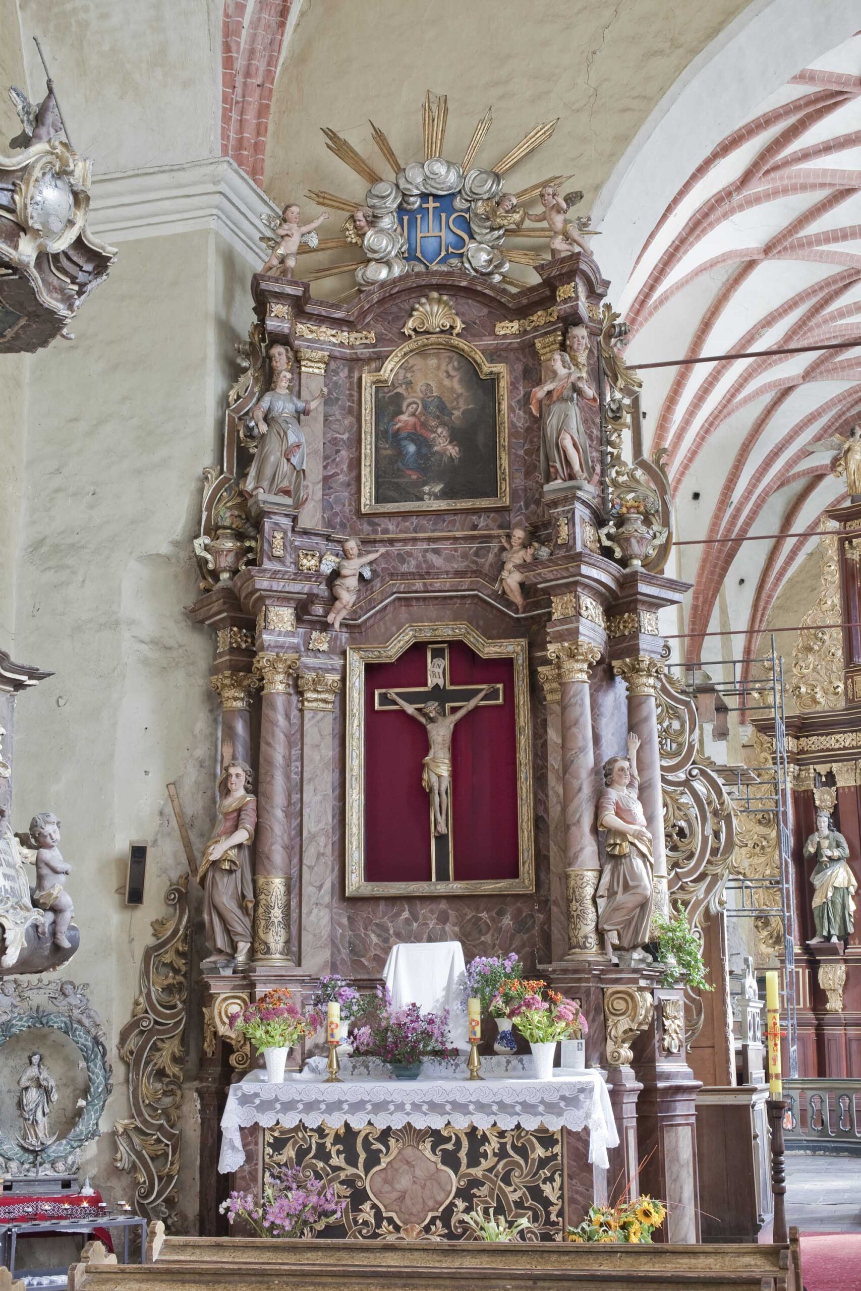Warto zwrócić uwagę na regencyjną nastawę pw. św. Franciszka, w której umieszczony został obraz przedstawiający stygmatyzację świętego, opatrzony datą 1654. Z pewnością obraz pochodził z wcześniejszego retabulum, którego malarska oprawa zachowała się na ścianie północnej. W dolnych rogach płótna umieszczono dwa herby: Rogala, opatrzony literami MD/DD oraz herb Murdelio I.M:K. Drugi z herbów należał do Jacka (Hiacynta) Murdelio Karwata, co najmniej od 1653 burgrabiego zamku biskupiego w Barczewie, który był wówczas jedyną osobą w Prusach pieczętującą się tym herbem. Być może pojawił się on na Warmii w 1633 roku wraz z biskupem Mikołajem Szyszkowskim.