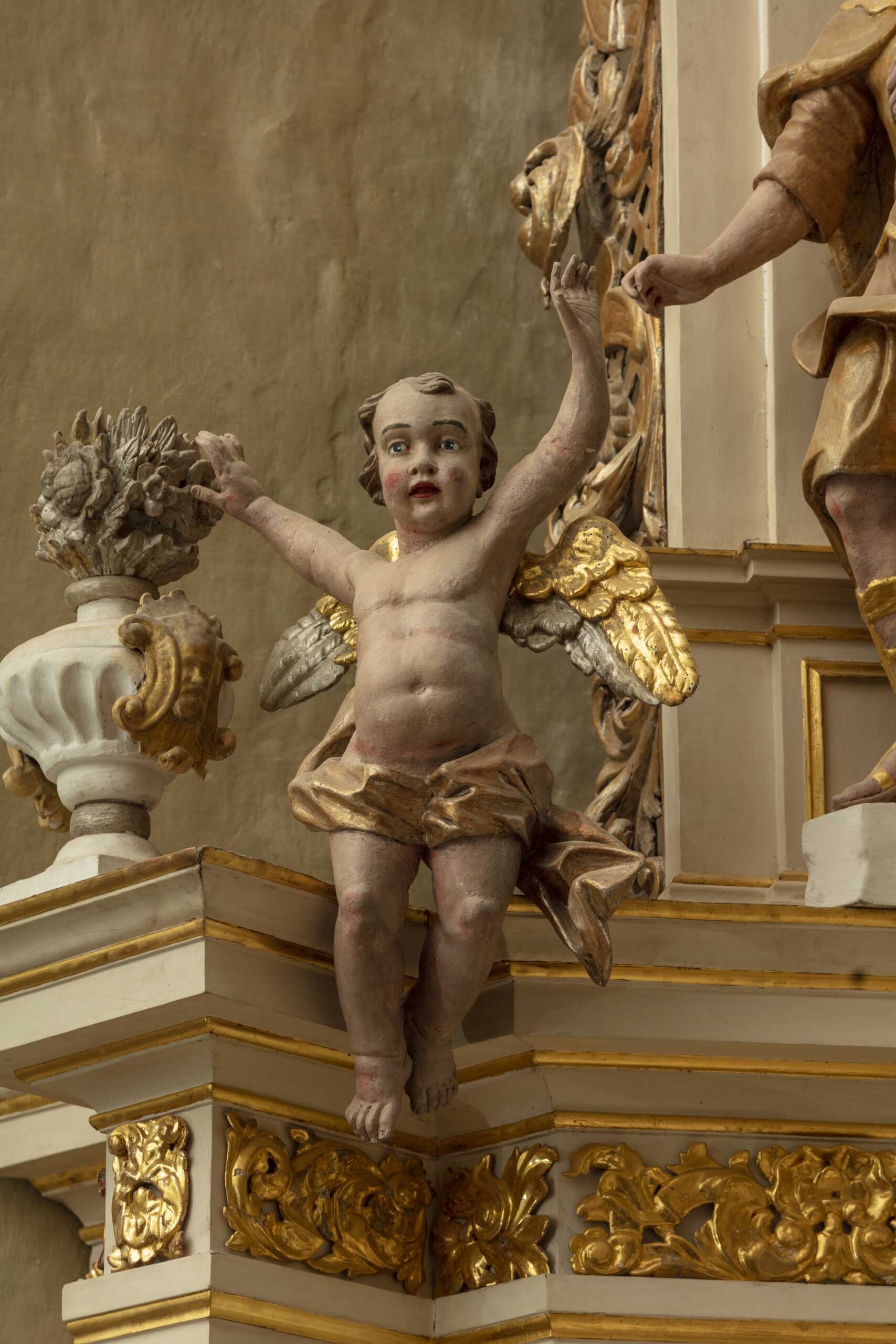 W połowie XVIII wieku po wzniesieniu ołtarza głównego zakonnicy przystąpili do wymiany starszych ołtarzy bocznych na nowe. Proces ten trwał przez kilka lat. Wiadomo z kroniki klasztornej, że znaczną część prac wykonał Jan Chrystian Schmidt. Imiona innych stolarzy i rzeźbiarzy czynnych przy wznoszeniu nowych nastaw nie zostały odnotowane.