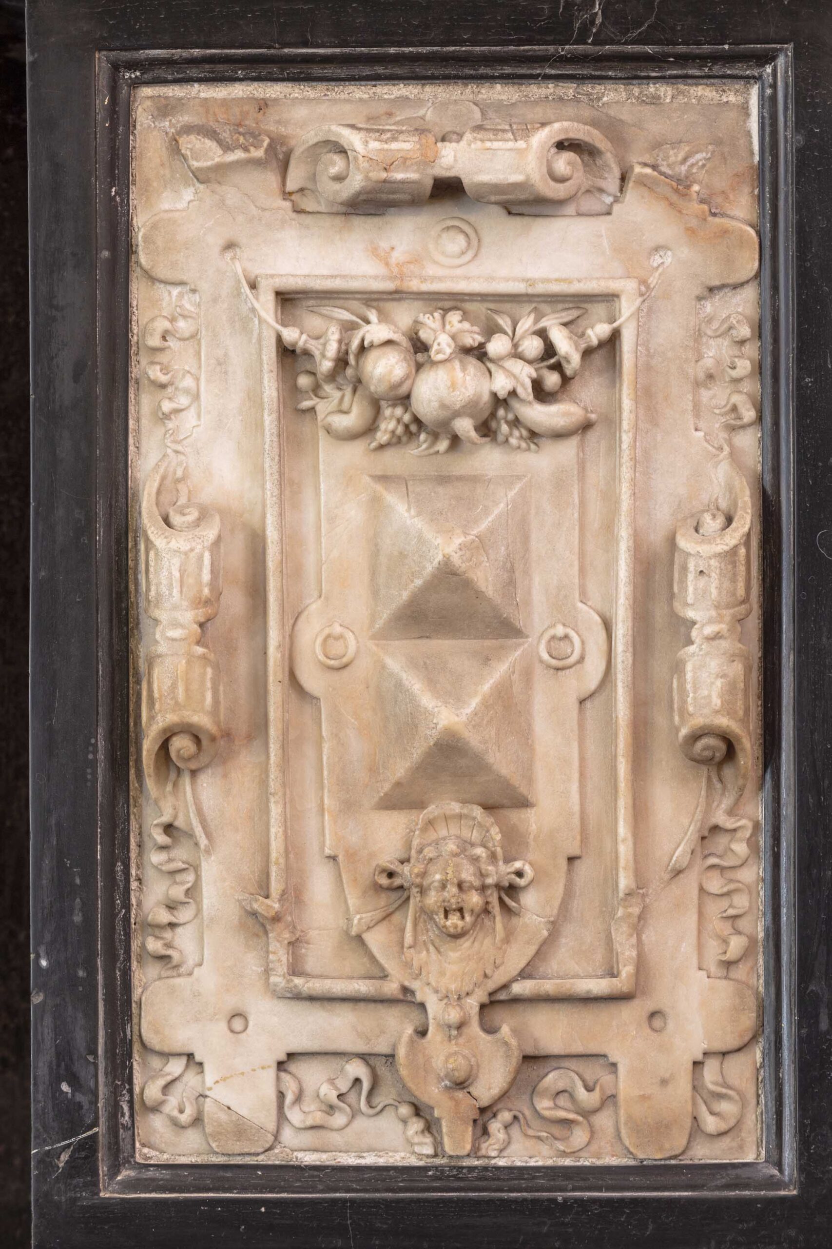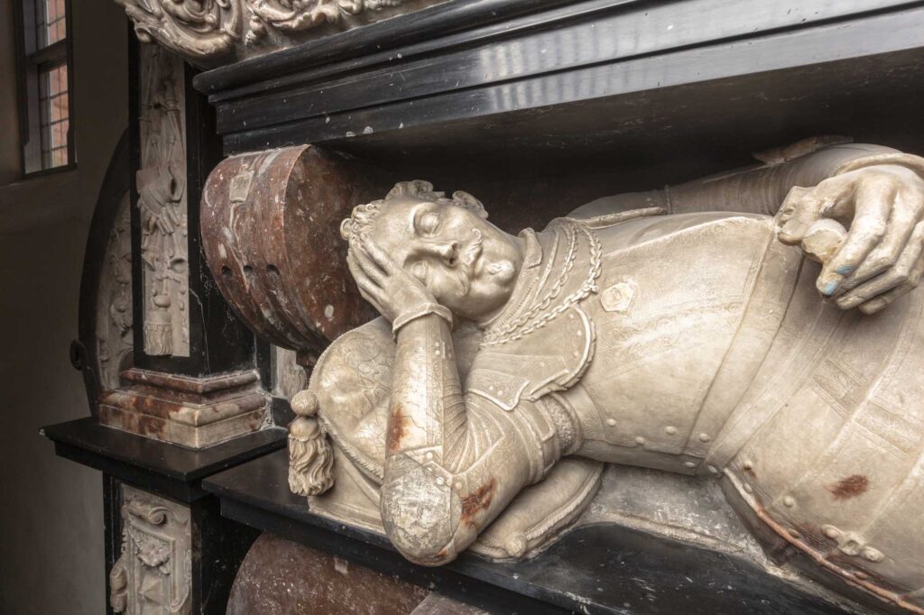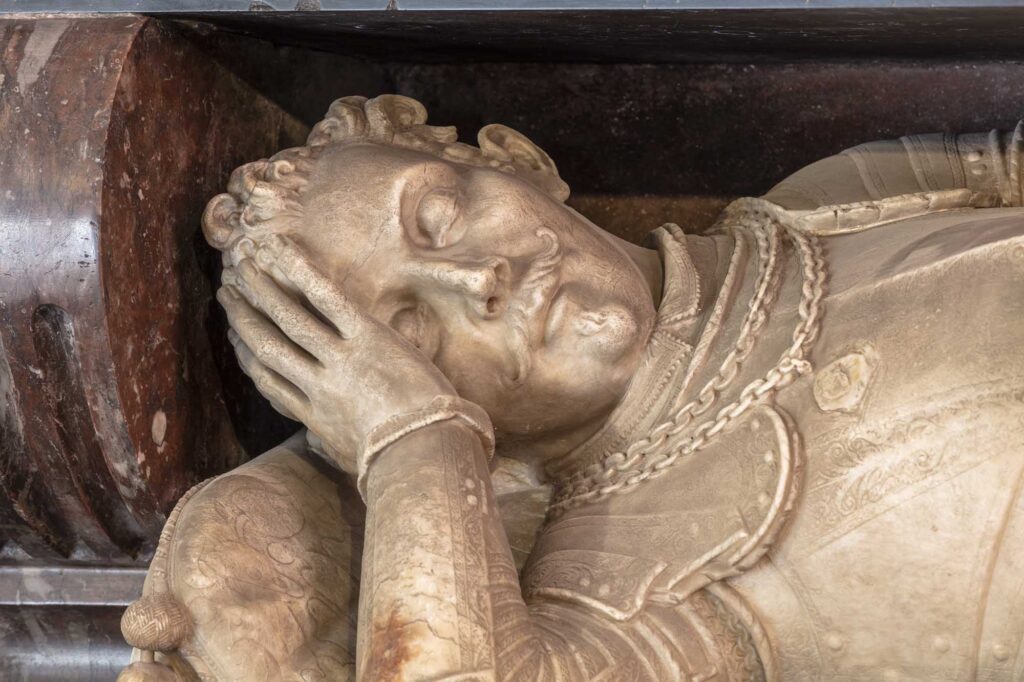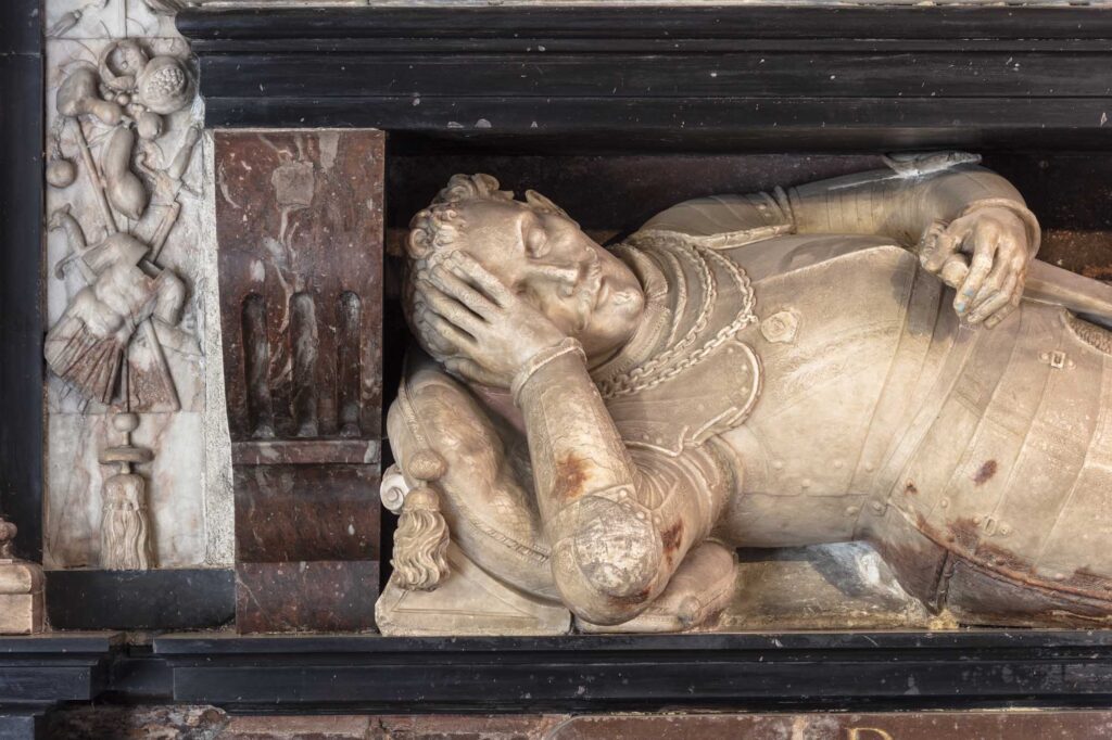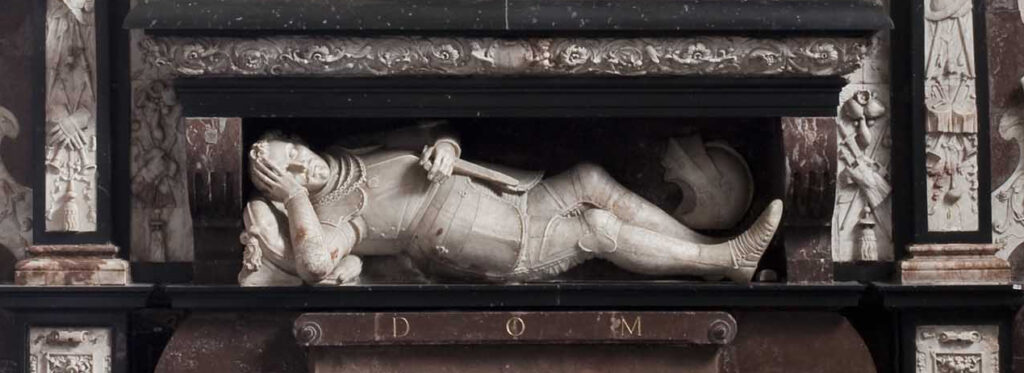 Twórcą nagrobka jest osiadły w Gdańsku flamandzki architekt i rzeźbiarz Willem van den Blocke [czyt. wilem wan den bloke]. Należał on do najwybitniejszych mistrzów dłuta, działających w Rzeczypospolitej na przełomie XVI i XVII w. Na zlecenie króla Stefana Batorego wykonał w Siedmiogrodzie nagrobek jego brata – Zygmunta, a dla niego samego zaprojektował koronę. Kolejny polski władca, Zygmunt III Waza, zamówił u Willema van den Blocke nagrobek swojego ojca Jana III Wazy, znajdujący się obecnie w Szwecji, w katedrze w Uppsali. Wykonany w stylu manieryzmu niderlandzkiego nagrobek Batorych został ukończony w 1598 roku. Po zmontowaniu kamiennych elementów architektonicznych, rzeźb figuralnych i detali ornamentalnych, dzieło zostało wzbogacone o malowane na ścianie ornamenty z motywem smoczych głów.
