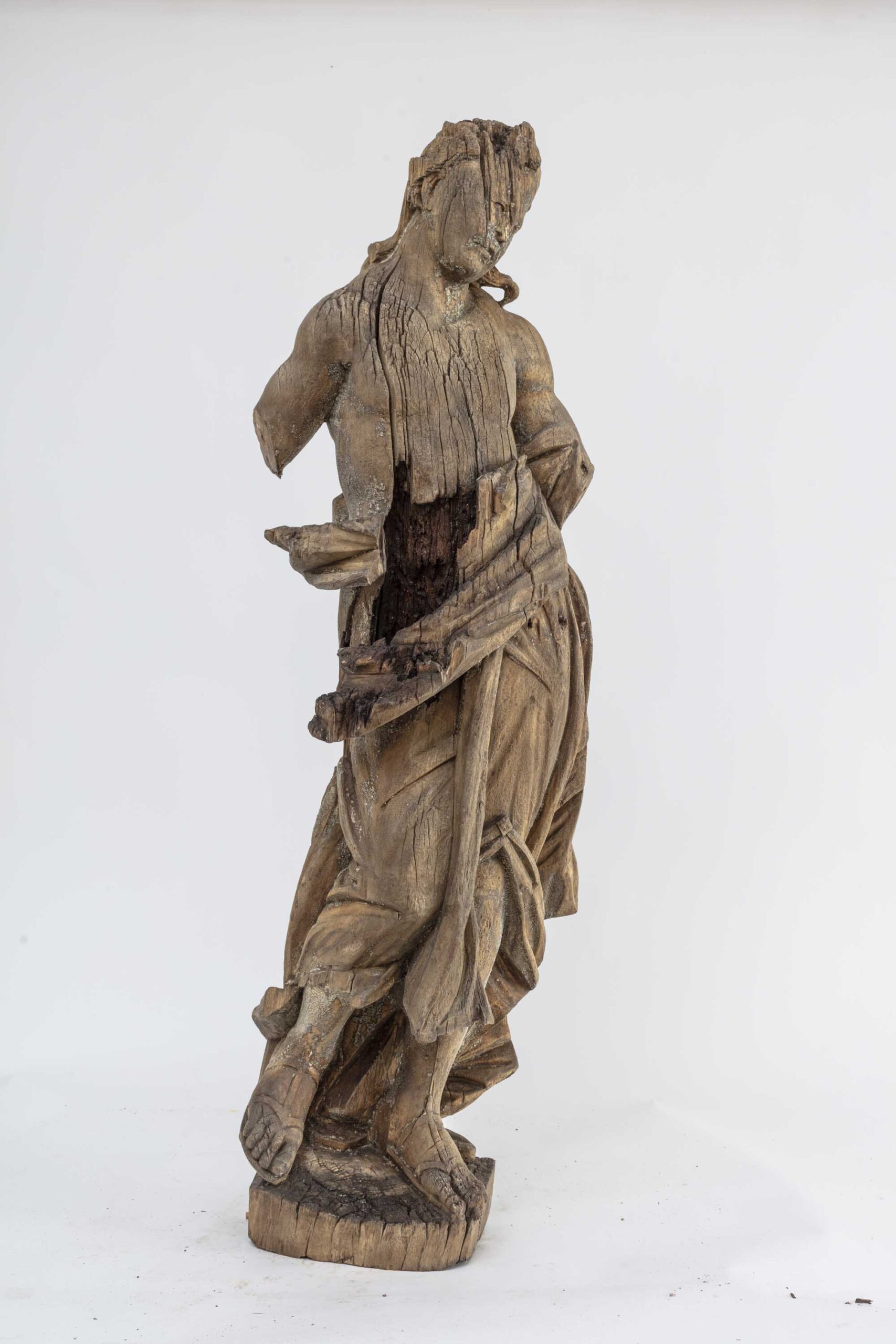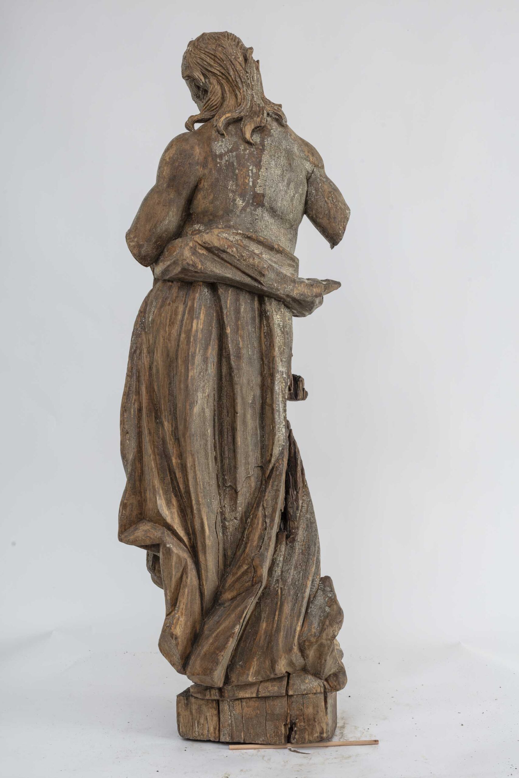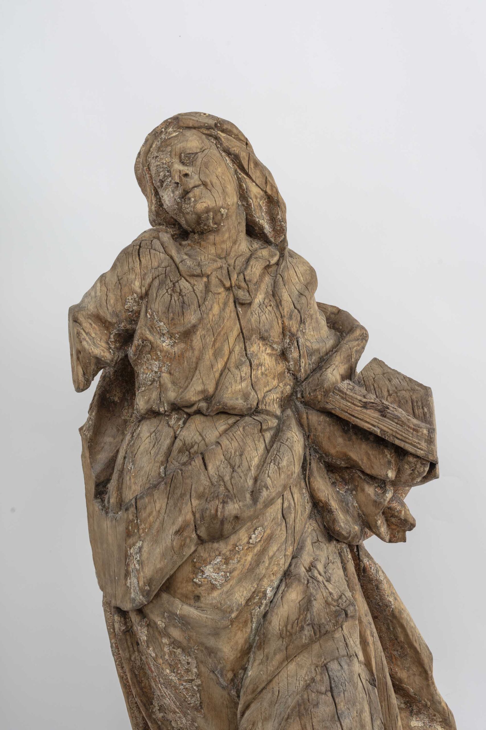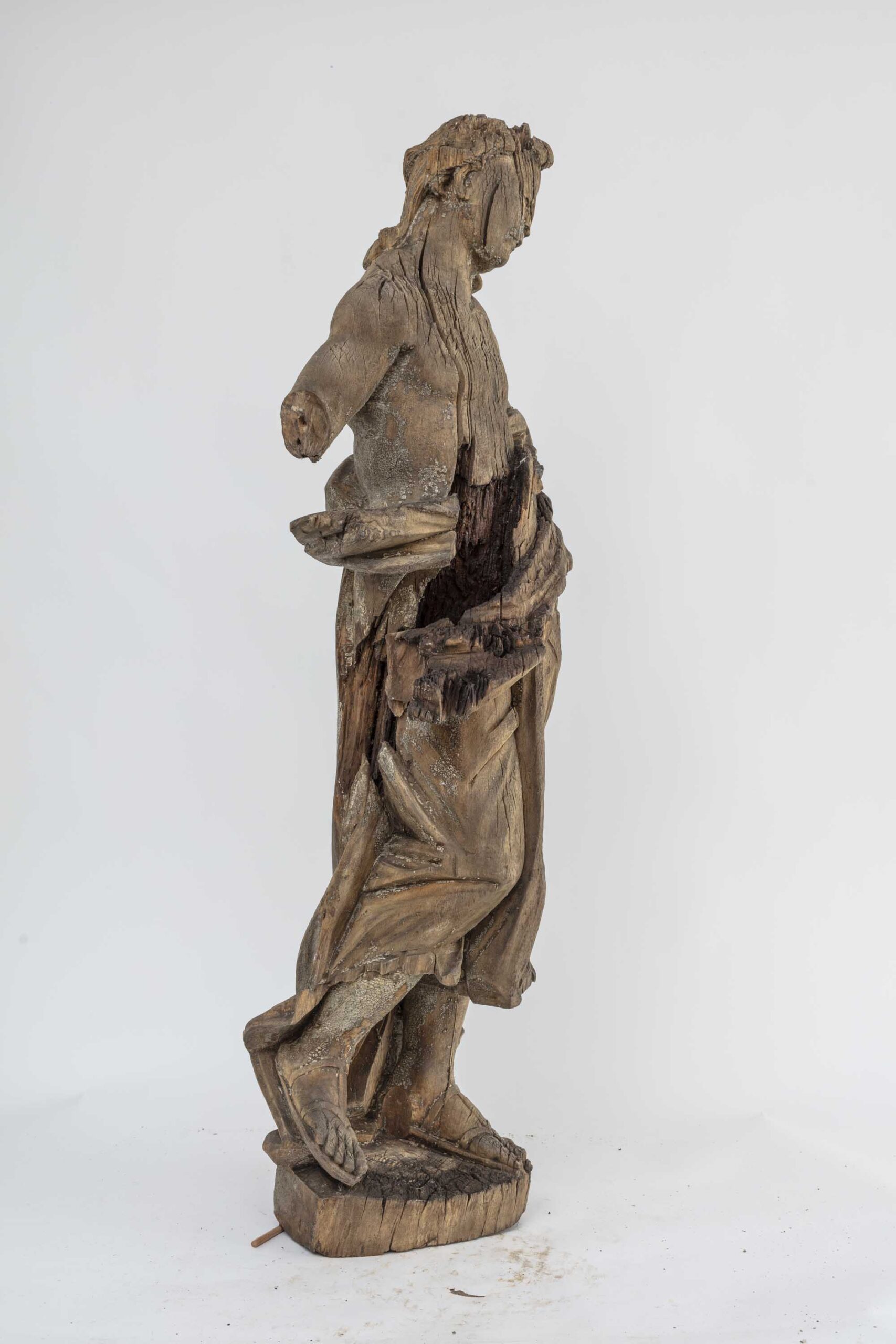 W trzech niższych wnękach zapewne dopiero w XIX w. znalazła się grupa wyciętych w lipinie figur: w środkowej – św. Jan Apostoł z księgą Ewangelii, a w bocznych – anioły ujęte w dynamicznych pozach w prawo, pozbawione jednak wtórnie skrzydeł. Pochodzą one prawdopodobnie z rozebranych w tym okresie późnobarokowych ołtarzy w 4. przęśle nawy, zbudowanych w latach 50. XVIII w. przez reszelski warsztat snycerski Johanna Christiana Bernhadra Schmidta (daty życia: 1734-1784), autora barczewskiej kazalnicy. Stylistycznie i formalnie anioły nawiązują do wczesnej fazy twórczości tego mistrza, i znajdują analogie z kilkoma figurami świętych bernardyńskich i franciszkańskich, zdeponowanymi obecnie w Muzeum Archidiecezji Warmińskiej w Olsztynie. Pozy wymienionych postaci wskazują, że pierwotnie były umieszczone po lewej stronie dwóch różnych nastaw. W figurze św. Jana uwagę zwraca jej umieszczenie na cokole w postaci realistycznie oddanego kielichowego kwiatu o rozchylonych płatkach. Snycerz nawiązał tym do wcześniejszej o stulecie manierystycznej tradycji niderlandzkiej, rozpowszechnionej w krajach nadbałtyckich, m.in. w Królewcu i Prusach Książęcych (Wschodnich).